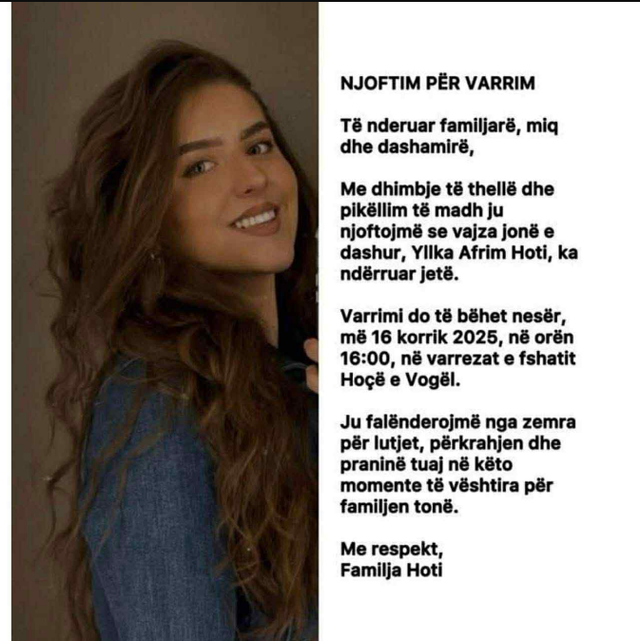 Yllka po udhëtonte me makinën e saj ditën e enjte kur humbi kontrollin duke dalë nga rruga. Mësohet se mjeti është përmbysur disa herë duke e plagosur rëndë. 21-vjeçarja luftoi me vdekjen deri ditën e shtunë, por fatkeqësisht nuk arriti të mbijetonte. Vdekjen e saj e njoftuan dje autoritetet gjermane.