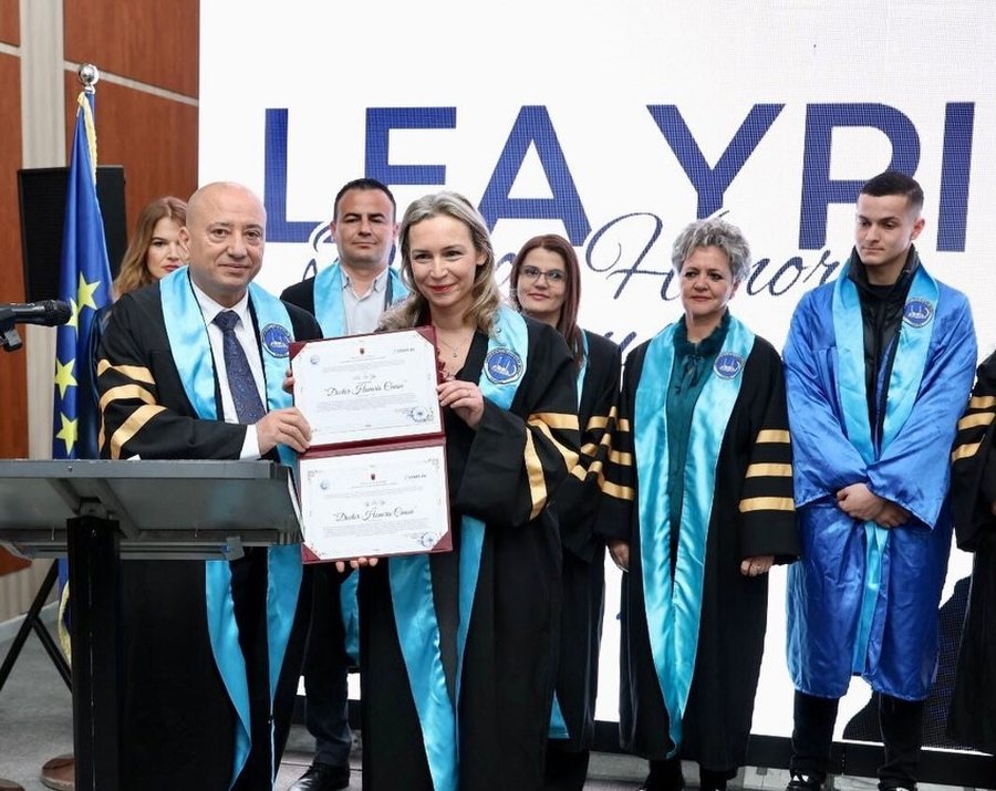 Fillimisht, ajo mori titullin e lartë “Doctor Honoris Causa” në Universitetin “Aleksandër Moisiu” të Durrësit, qytetin e saj të lindjes.