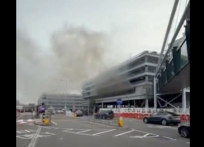Katër automjete zjarrfikëse dhe rreth 25 zjarrfikës shkuan me nxitim në vendngjarje. Videot tregojnë tym të dendur që ngrihet nga parkingu.