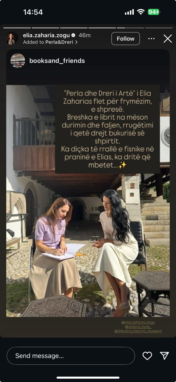 Nga ana tjeter, Elia Zaharia ka preferuar te flase mbi kete ngjarje me nje zhvillim te ri ne jeten e saj, duke publikuar ne instagramin e saj prezantimin e librit personal “Perla dhe Dreri i Arte”, i cili është një përrallë që sjell një histori magjike me elementë fantazie dhe mesazhe shprese.