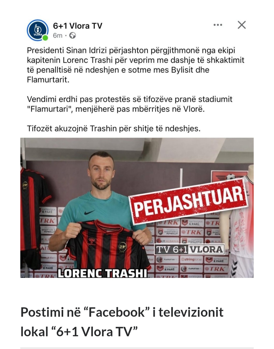 Sipas të njëjti burim, ky vendim i kreut të klubit vlonjat, ka ardhur pas protestës së tifozëve pranë stadiumit “Flamurtari”. Në vazhdim pritet një reagim zyrtar nga klubi i Flamurtarit.