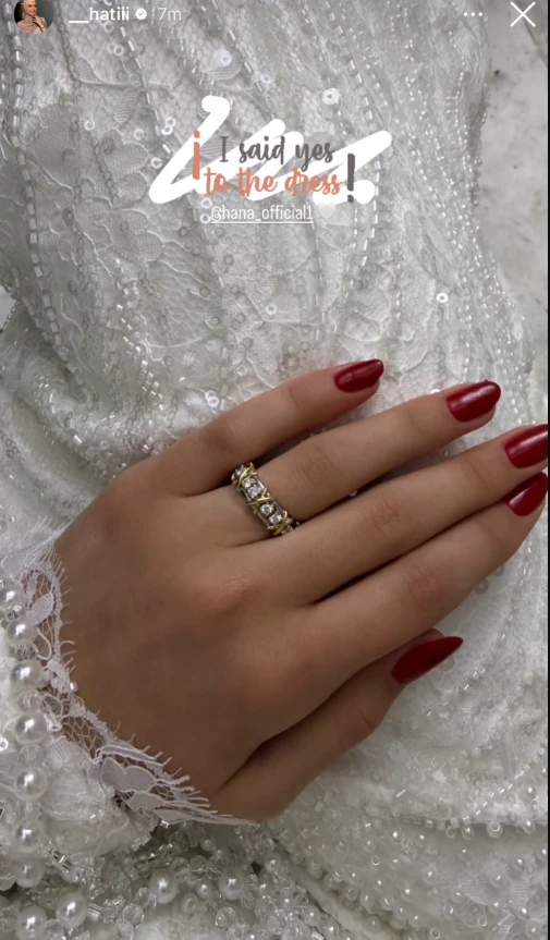 Fillimisht, Hati ndau me ndjekësit e saj foto ku shfaqej me një fustan nuseje, pamje që menjëherë ngjalli spekulime se ajo mund të kishte bërë hapin e madh në jetën e saj private. Rrjeti u mbush me komente dhe hamendësime rreth një martese të mundshme.