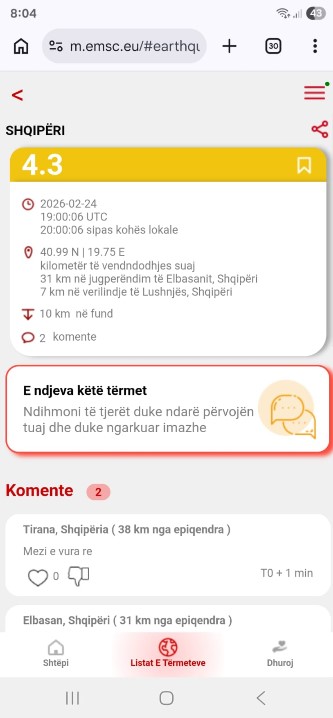Lëkundje tërmeti janë ndjerë pasditen e sotme në qytetin e Elbasanit. Siç raportohet lëkundjet ishin të forta dhe janë ndjerë edhe në qytete të tjera si Tiranë apo Lushnjë.