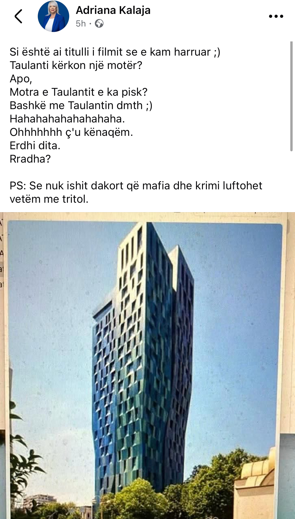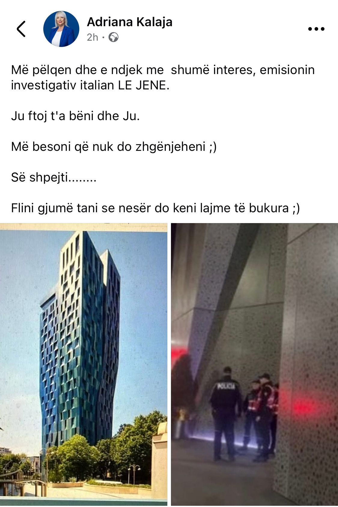 Mbrëmjen e sotme u raportua masivisht nga mediat për një operacion të SPAK dhe BKH të cilët nën drejtimin e oficerëve të antimafias italiane mësynë për kontroll në një prej kullave më luksoze të Tiranës.