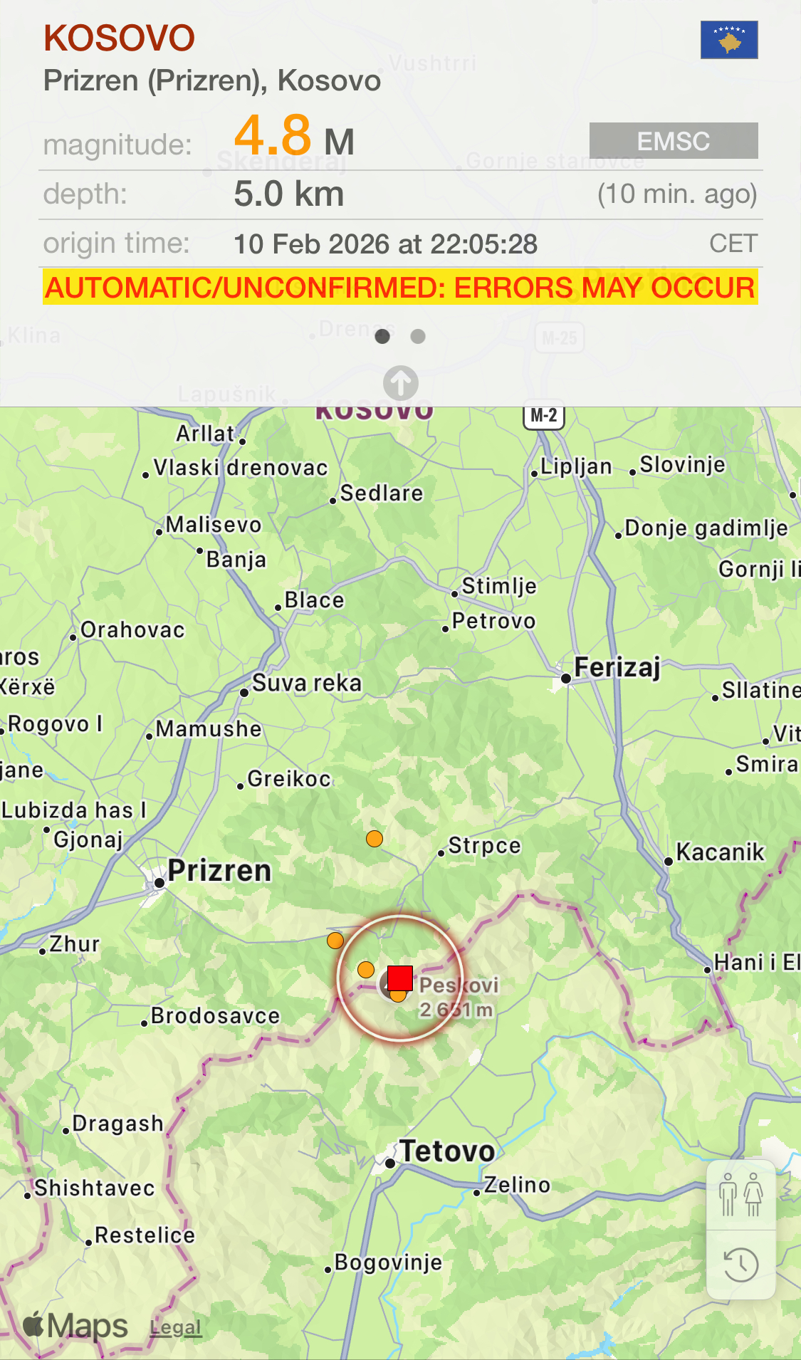 Në bazë të qendrës për regjistrimin e termeteve, epiqendra ka qenë në Maqedoni të Veriut, por që lëkundjet e tokës janë dëgjuar edhe në Kosovë, Shqipëri dhe Serbi.