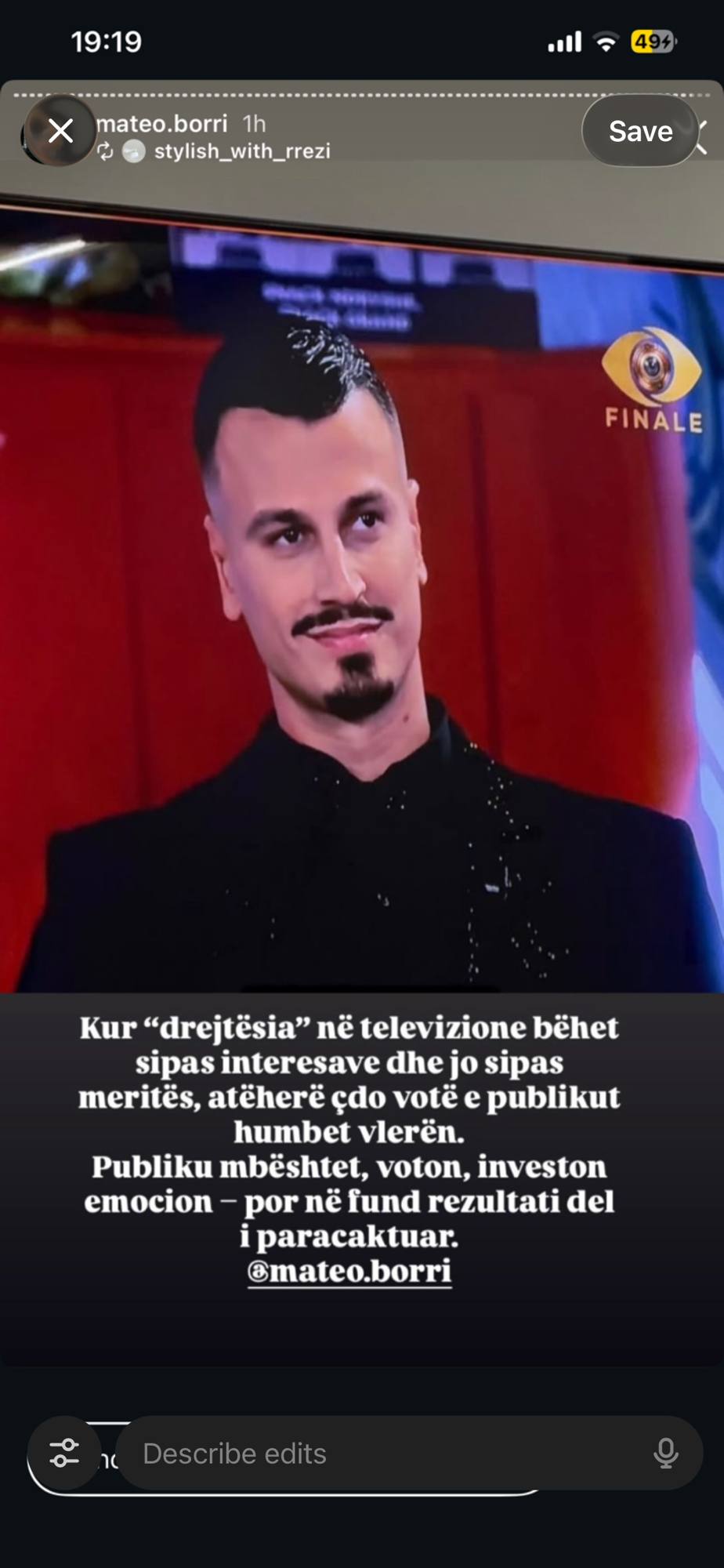 Mateo ka bërë një reagim të fortë në rrjetet sociale, duke lënë të kuptohet pakënaqësia e tij ndaj rezultatit të finales. Në një postim që u shpërnda në Instagram (dukej si repost në profilin e tij), ai ngrinte dyshime mbi “drejtësinë” dhe mënyrën se si u vendos fituesi.
