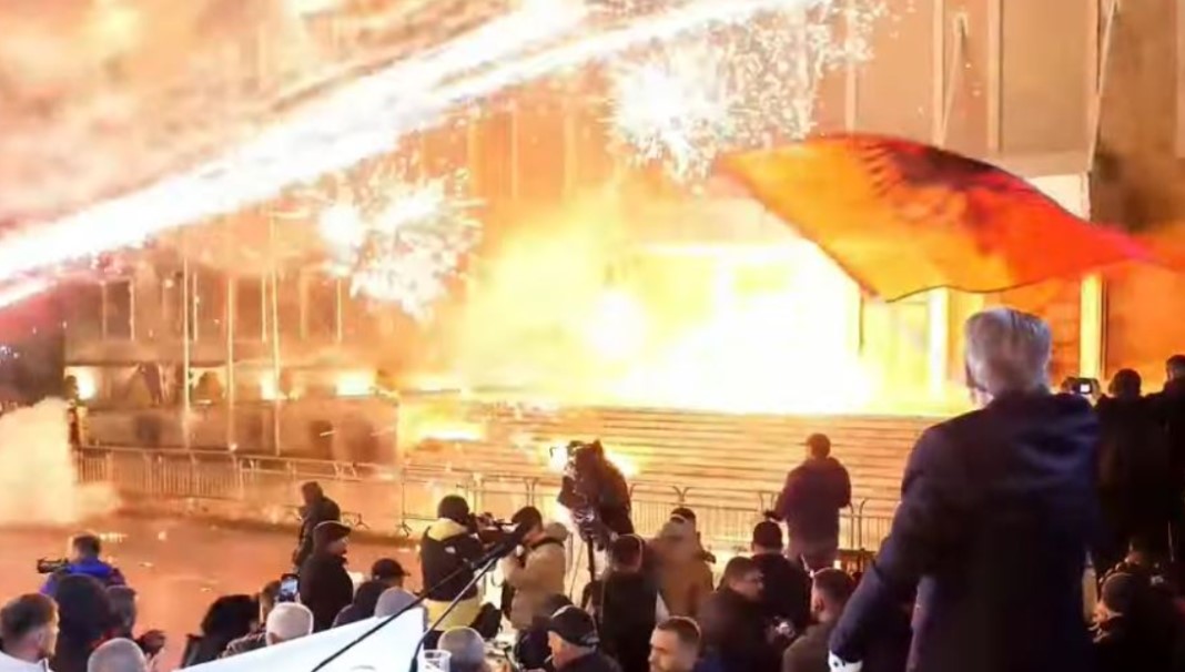Situata me protestën para parlamentit u tensionua pasi një grup militantësh opozitarë hodhën në drejtim bomba molotov dhe fishekzjarrë.