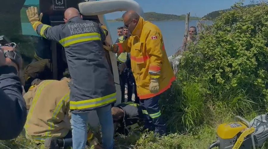 Forcat zjarrfikëse ndodhen në vendngjarje dhe po punojnë për hapjen e derës, si dhe për zbritjen e nxënësve nga autobusi.