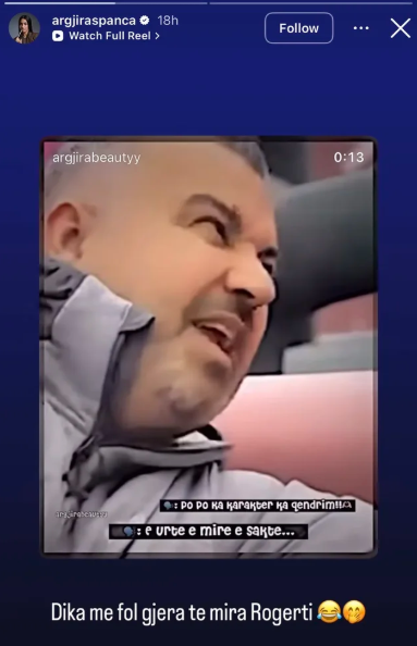 “Dika me fol gjera te mira Rogerti ????????”, ka shkruar ajo, duke lënë të kuptohet se i ka ardhur mirë për fjalët e thëna.