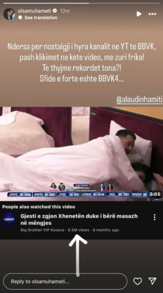 “Ndërsa për nostalgji i hyra kanalit në YT të BBVK, pashë klikimet në këtë video, më zuri frika! Të thyejmë rekordet tona?! Sfide e fortë është BBVK4…”, shkroi ajo.